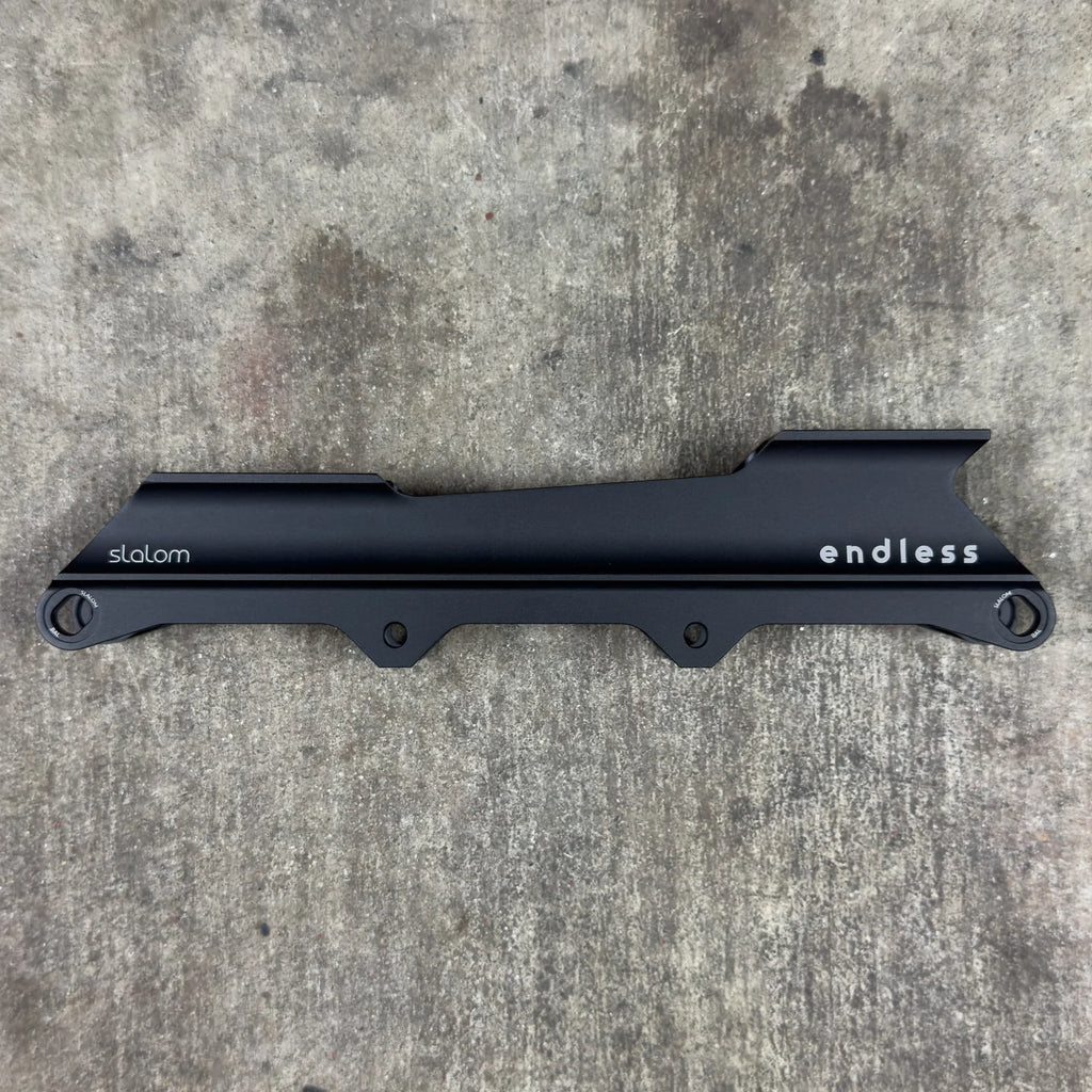 The Endless Slalom is a 165 mm compatible frame engineered for slalom and freestyle skaters size 41 and up who demand unmatched control and versatility beyond the cones. Rocker axles on the outer wheels of this patent pending, multi-setup design let skaters easily switch between Balanced Rocker and Slalom Rocker configurations.